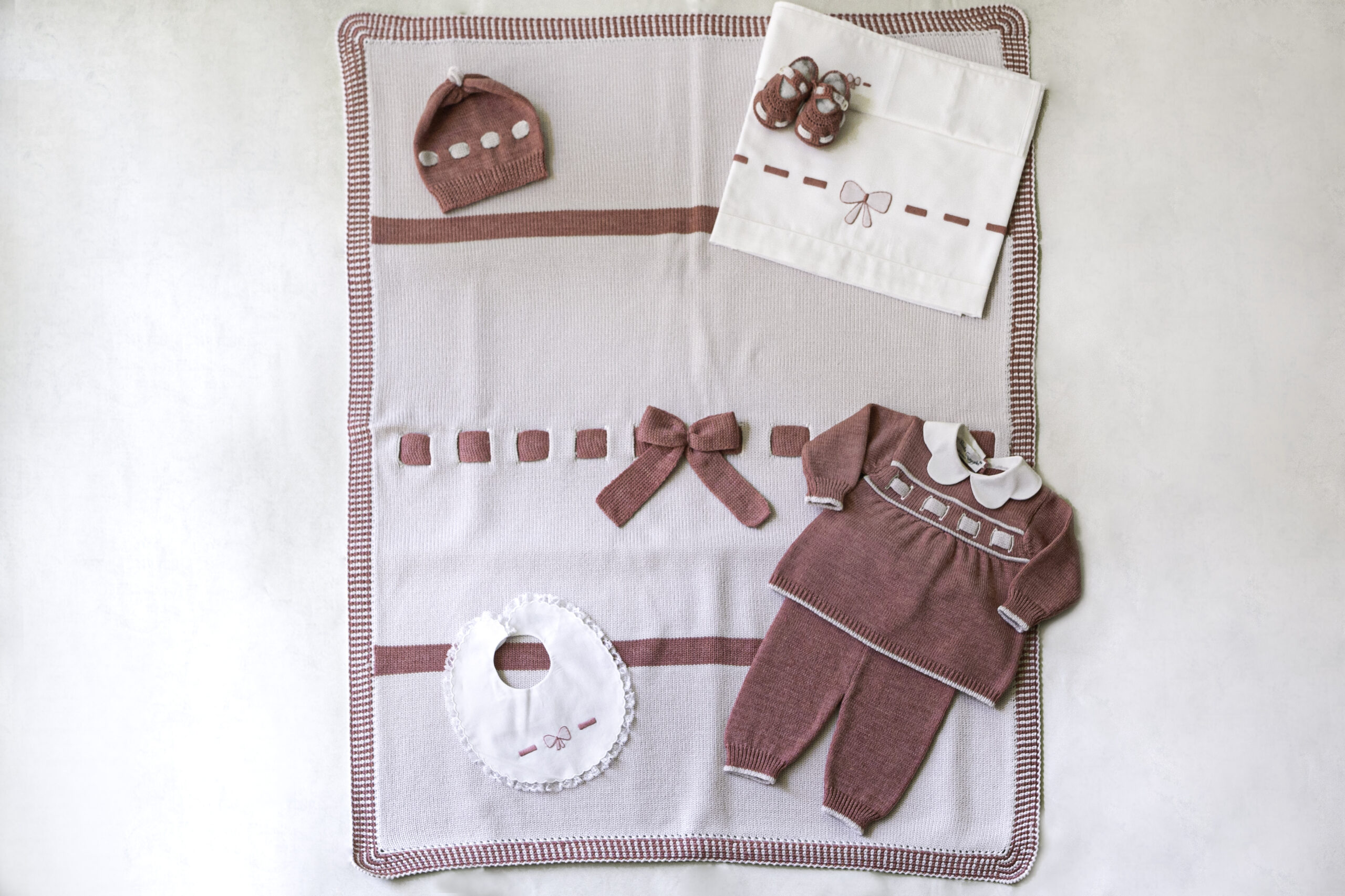 OVINDOLI : Collezione invernale corredino neonato OVINDOLI ideato e disegnato dalla stilista Antonella Finocchiaro, Realizzato con la scelta dei migliori tessuti e filati italiani di altissima qualità, e impreziosito da ricami fatti rigorosamente a mano.