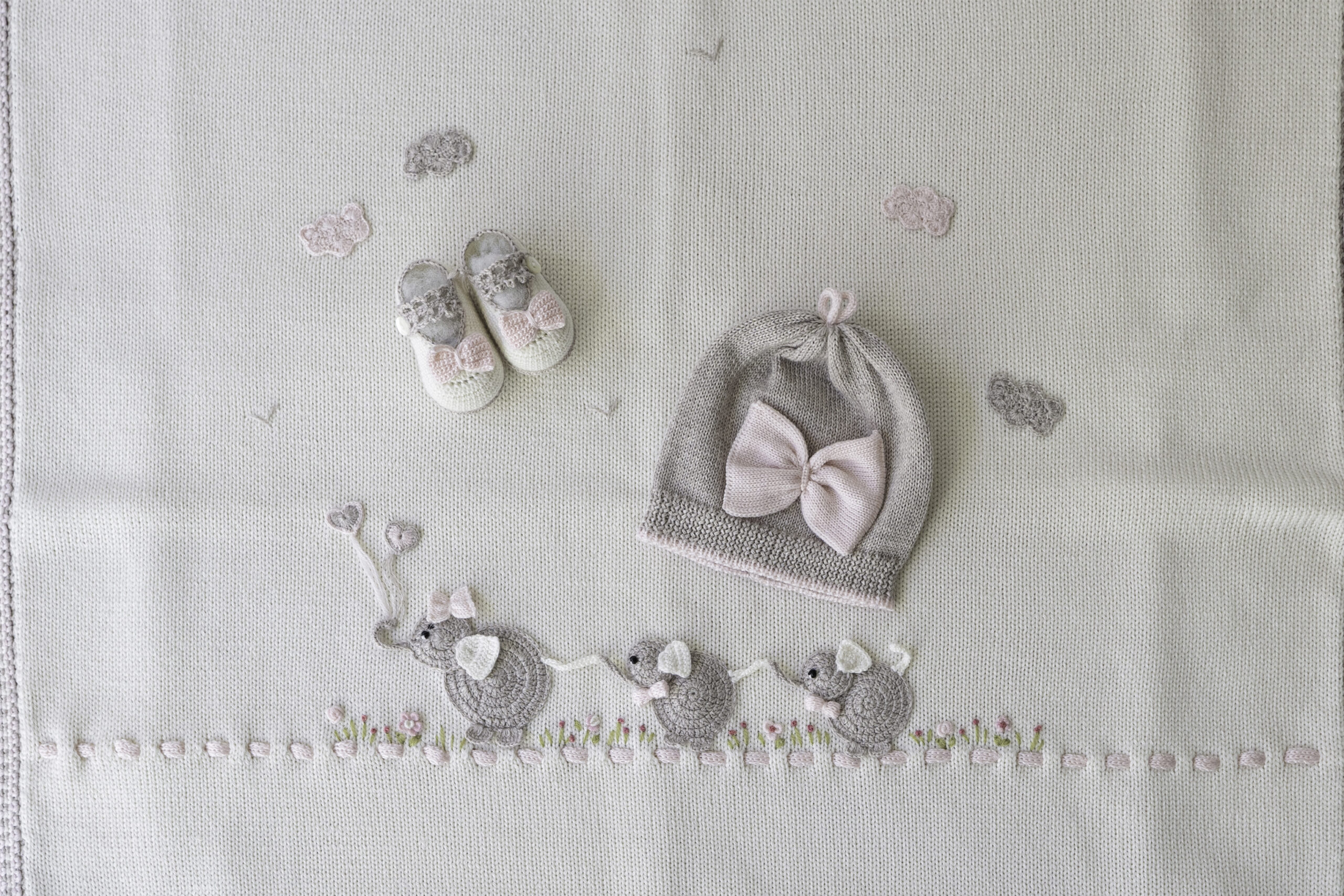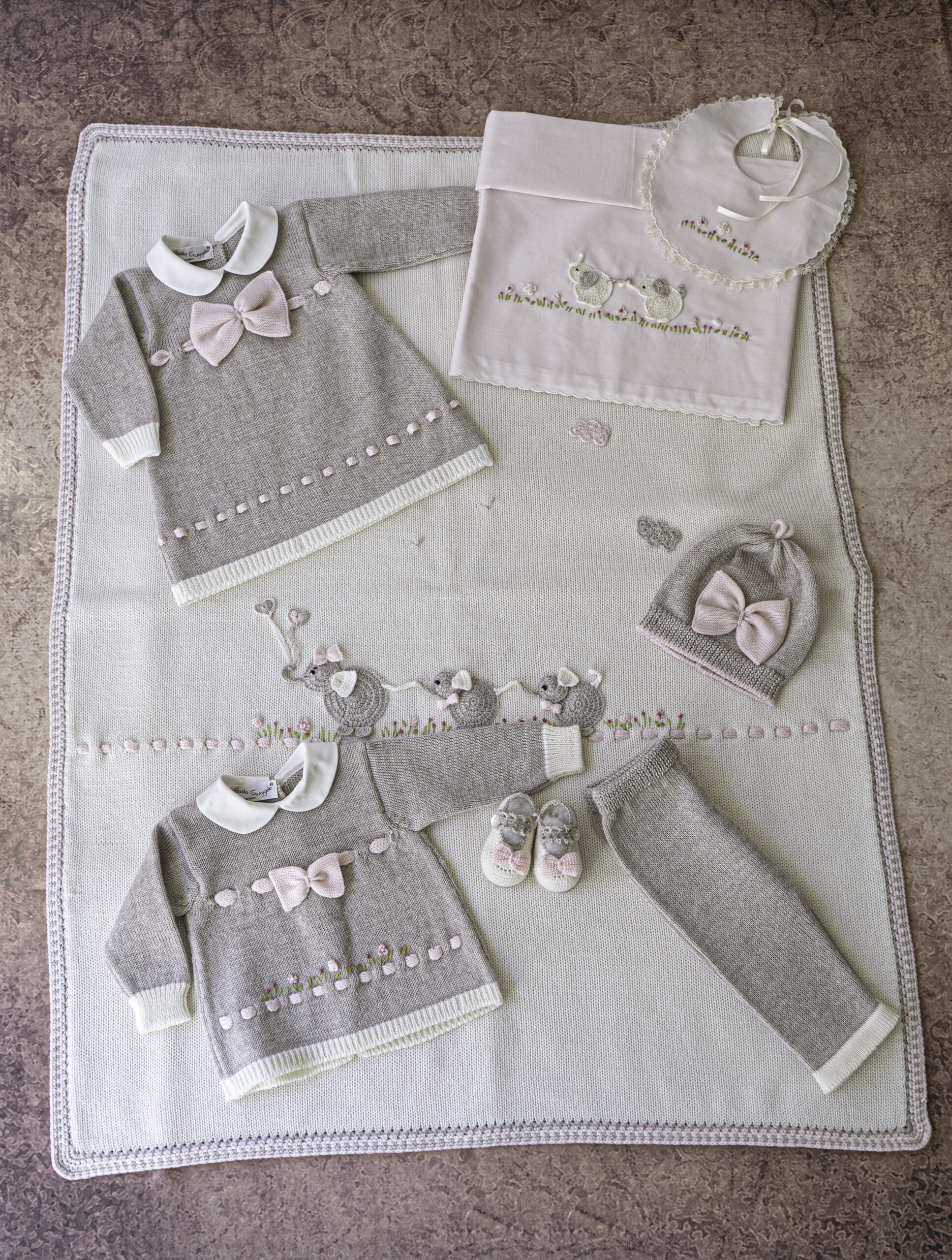 ROCCARASO : Collezione invernale corredino neonato ROCCARASO ideato e disegnato dalla stilista Antonella Finocchiaro, Realizzato con la scelta dei migliori tessuti e filati italiani di altissima qualità. Arricchito con ricami ed applicazioni fatti rigorosamente a mano.
