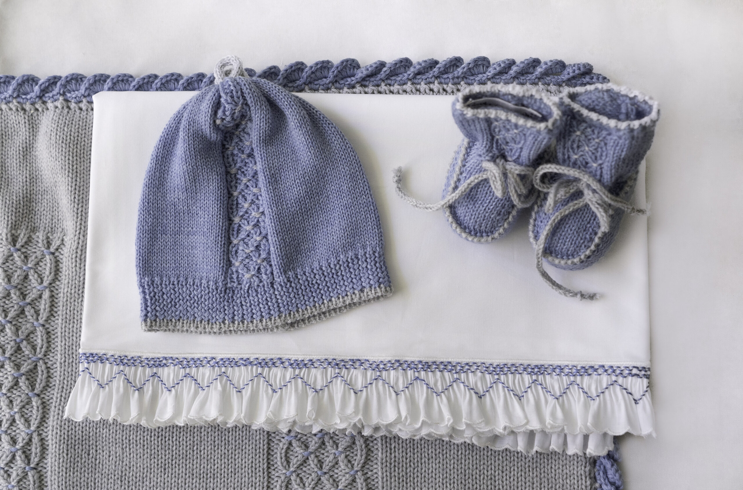 STELVIO : Collezione invernale corredino neonato STELVIO ideato e disegnato dalla stilista Antonella Finocchiaro, Realizzato con la scelta dei migliori tessuti e filati italiani di altissima qualità. Arricchito con ricami rigorosamente eseguiti a mano come l’uso del bellissimo punto smok.